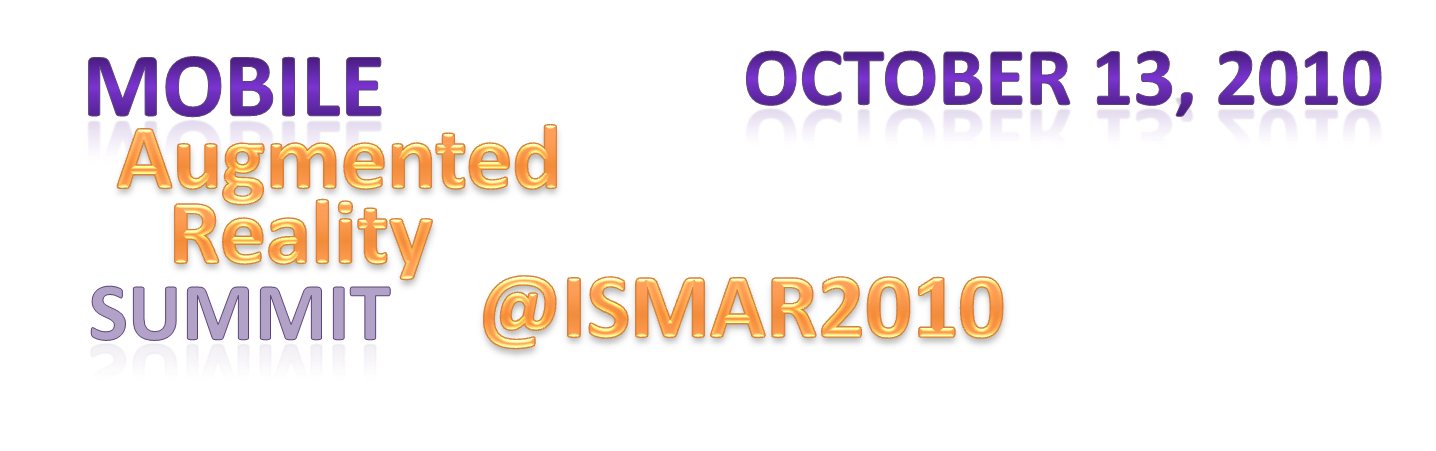 This is an ISMAR2010 workshop. Entry to the summit, including receiving all prepared content and participation in discussion sessions, is open to those who register and hold a pass for the ISMAR2010 workshops.
